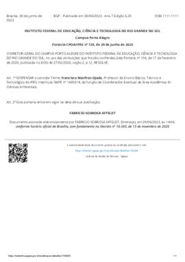 UntitledDispensa Francisco Manfron Ojeda da função de Coordenador Eventual da Área Acadêmica III - Ciências Ambientais.