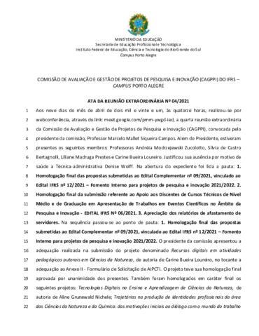 Ata 04/2021 - Reunião Extraordinária