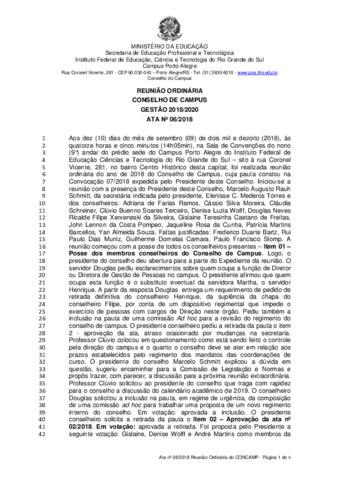 Ata da Reunião Ordinária do Conselho do Campus Porto Alegre, realizada em 10 de setembro de 2018.