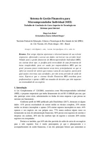 Este artigo objetiva apresentar o desenvolvimento de um website responsivo, oferecendo o acesso aos dados via browser em servidor local. Voltado para a gestão financeira do Microempreendedor Individual (MEI), um sistema deste tipo, se justifica pela necessidade de uma ferramenta de baixa complexidade, para ser usada por empreendedores MEI, que em geral, possuem pouco conhecimento nesta área; principalmente no que se refere ao controle de valores que entram e saem do seu negócio, motivo pelo