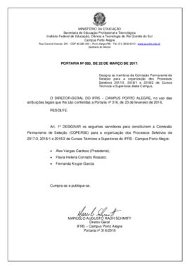 UntitledDesigna os membros da Comissão Permanente de Seleção para a organização dos Processos Seletivos 2017/2, 2018/1 e 2018/2 de Cursos Técnicos e Superiores.