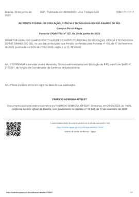 Fabrício Sobrosa AffeldtDispensa Cláudio Vinicius Silva Farias da função de Coordenador do Curso de Mestrado Profissional em Propriedade Intelectual e Transferência de Tecnologia para a Inovação.
