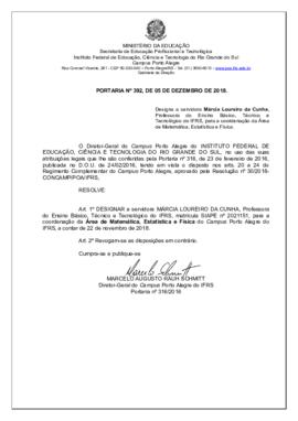 Marcelo Augusto Rauh SchmittDesigna Márcia Loureiro da Cunha para a coordenação da Área de Matemática, Estatística e Física.