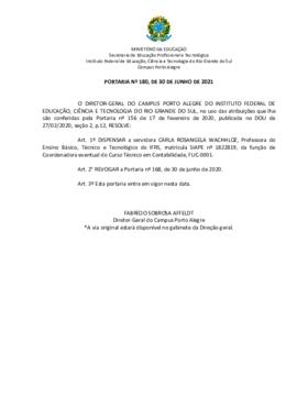Marcelo Augusto Rauh SchmittDesigna Carmem Haab Lutte Cavalcante para a função de Coordenadora do Curso Técnico em Contabilidade em circunstâncias de impedimento legal e eventual da titular.