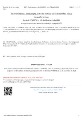Fabrício Sobrosa AffeldtDispensa Fernanda Kruger Garcia da função de Coordenadora do Curso Técnico em Instrumento Musical.