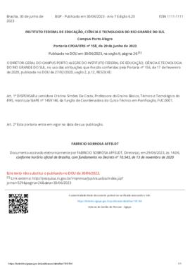 Fabrício Sobrosa AffeldtDispensa Cristina Simões Da Costa da função de Coordenadora do Curso Técnico em Panificação.