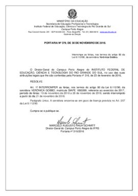 Sem títuloCancela as férias, nos termos do artigo 80 da Lei 8112/90, da servidora Eloísa Solyzko Gomes