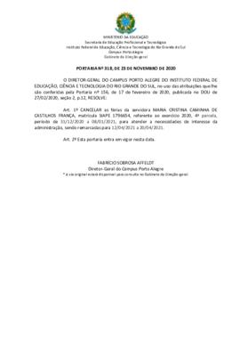 Fabrício Sobrosa AffeldtCancela as férias de Maria Cristina Caminha de Castilho França.
