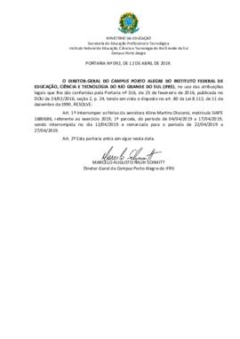 UntitledCancela as férias, nos termos do artigo 80 da Lei 8112/90, da servidora Nara Regina Atz.