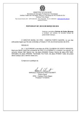 Sem títuloAutoriza Clarissa de Godoy Menezes a conduzir, os veículos oficiais .
