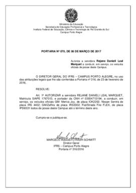 UntitledAutoriza Rejane Danieli Leal Marquet a conduzir, em serviço, os veículos oficiais.