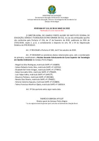 Designa Núcleo Docente Estruturante do Curso Superior de Tecnologia em Gestão Ambiental.