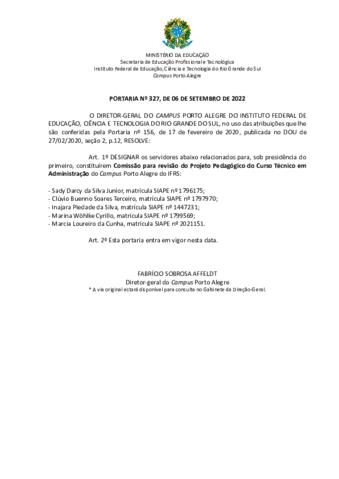 Portaria 327/2022 - revogada