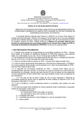 Sem títuloABERTURA DE PROCESSO ELEITORAL PARA ESCOLHA DE REPRESENTANTES DA COMUNIDADE ACADÊMICA DO CAMPUS PORTO ALEGRE DO IFRS NA COMISSÃO DE ASSISTÊNCIA ESTUDANTIL DO IFRS-POA