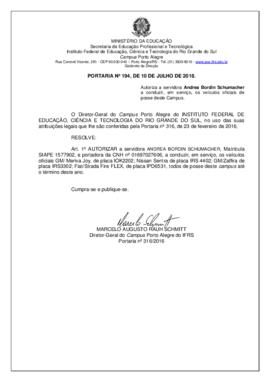 UntitledAutoriza a servidora Andrea Bordin Schumacher a conduzir, em serviço, os veículos oficiais de posse deste Campus.