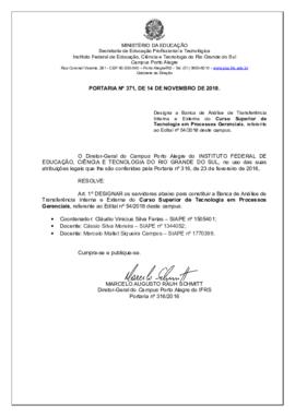 Designa a Banca de Análise de Transferência Interna e Externa do Curso Superior de Tecnologia em Processos Gerenciais, referente