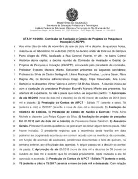 Comissão de Avaliação e Gestão de Projetos de Pesquisa e InovaçãoAta da reunião da Comissão de Avaliação e Gestão de Projetos de Pesquisa e Inovação (CAGPPI), realizada no dia 18 de outubro de 2018.