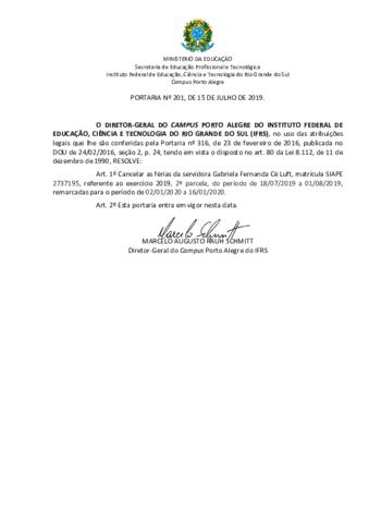 Cancelar as férias da servidora Gabriela Fernanda Cé Luft
