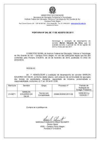 Homologa a avaliação de desempenho de Marlon Eduardo da Silva.