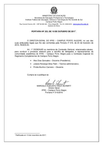 DESIGNAR os membros da Comissão Eleitoral, relacionados abaixo, para conduzir o processo eleitoral para a escolha de delegados e representantes da comunidade acadêmica do IFRS – Campus Porto Alegre para a Comissão Especial do Regimento Complementar do Campus Porto Alegre
