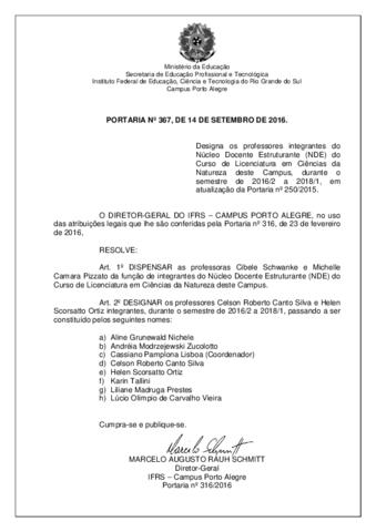 Designa os professores integrantes do Núcleo Docente Estruturante do Curso de Licenciatura em Ciências da Natureza em atualização da Portaria 250/2015.