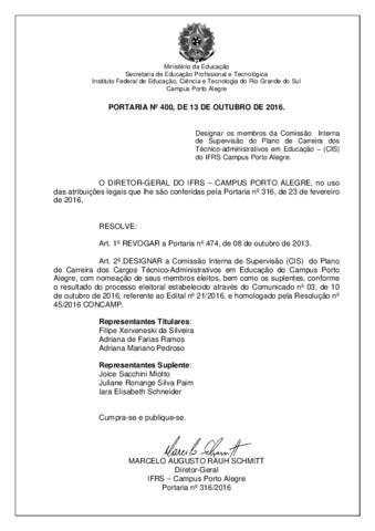 Diretor-Geral do Campus Porto Alegre do IFRS (Gestão 2016-2020).