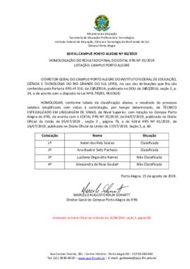 Marcelo Augusto Rauh SchmittHOMOLOGAÇÃO DO RESULTADO FINAL DO EDITAL CAMPUS PORTO ALEGRE Nº 26/2019.