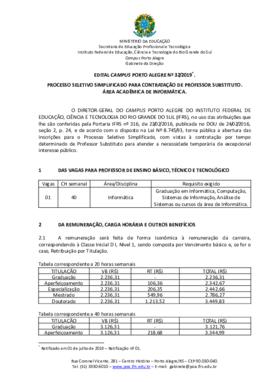 Marcelo Augusto Rauh SchmittPROCESSO SELETIVO SIMPLIFICADO PARA CONTRATAÇÃO DE PROFESSOR SUBSTITUTO. ÁREA ACADÊMICA DE INFORMÁTICA.