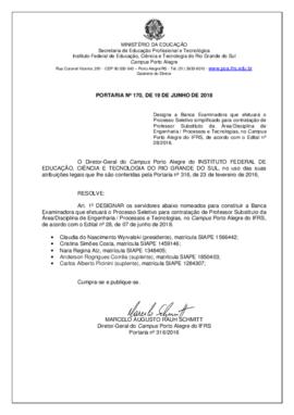 UntitledDesigna a Banca Examinadora que efetuará o Processo Seletivo simplificado para contratação de Professor Substituto da Área/Disciplina de Engenharia / Processos e Tecnologias, no Campus Porto Alegre do IFRS, de acordo com o Edital nº 28/2018.