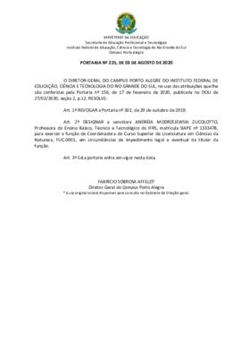 Fabrício Sobrosa AffeldtDesigna Andréia Modrzejewski Zucolotto para exercer a função de Coordenadora do Curso Superior de Licenciatura em Ciências da